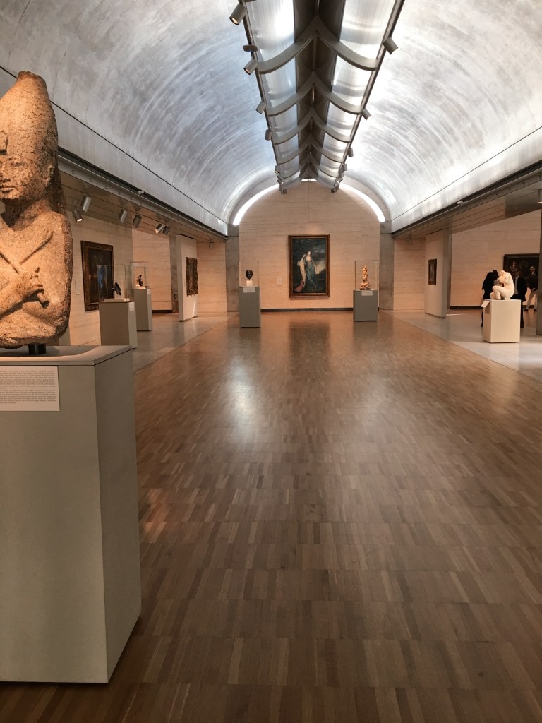 There are a few distinctive features at the Kimbell. The building is broken up into three sections: the northern section, middle section, and southern section. Both the northern and southern sections have six vaults aligned parallel to each other that span north to south while the center section has four vaults of the same design. The vaults are very distinctive and signal to the visitor that they are about to experience something they haven’t experienced before. The entrance is located in the middle section. Flanking each side of the entrance is a water feature where water from an upper pool drops like a waterfall into a lower pool. The sound of flowing water provides something of a palette cleanser before entering the museum. There are benches that sit under the outermost vaults, which are open in the style of a portico. The portico vault overlooks the water feature and allows visitors to sit and reflect after viewing the art gallery. You enter the gallery in the center of one of the long spanning vaults and you instantly feel like you are in a Roman temple. Most of the lighting in the museum comes from natural light outside. The vaults are designed to allow natural light to pour in and illuminate the gallery spaces. The museum has an airy feel to it. The gallery features artwork from many different eras going back thousands of years. They stop at the modern era, which is the domain of the Modern next door. They also don’t feature any American art, which is the domain of the nearby Amon Carter Museum. But there is something for everyone. The walls are also faced in travertine, which is an elegant and unique building material. It is also a historical nod to construction in Ancient Rome as many of the Roman monuments and temples were built out of travertine. Visiting the Kimbell is truly a memorable experience and one that I hope everyone gets a chance to see in their lifetime.