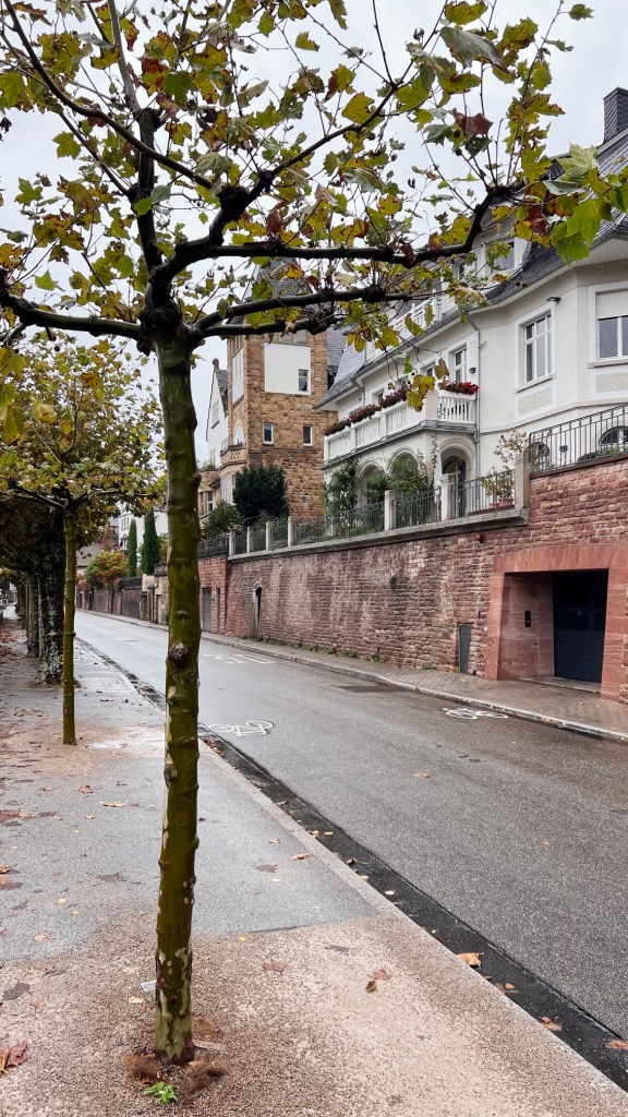 After walking through the gardens, I began to look for the exit. Below Scheffelterrasse is an asphalt-paved path complete with a protective railing on one side and a stone wall on the other side. It zigzags down the steep hill at a gentle slope. It is also textured to give the walker a non-slick surface to walk on. It is as if you are walking on level ground. The path exits at the back of a quiet street lined with houses and puts you right back into the city. Sometimes the best experiences in life require a little adversity. You have to sometimes, literally, climb that hill. And when you reach the top, you get to reap the rewards of your hard work. And if you’re lucky, as I hope we all can be in life, the way home will be gentle and easy, giving us plenty of time to reflect on all that we have experienced.