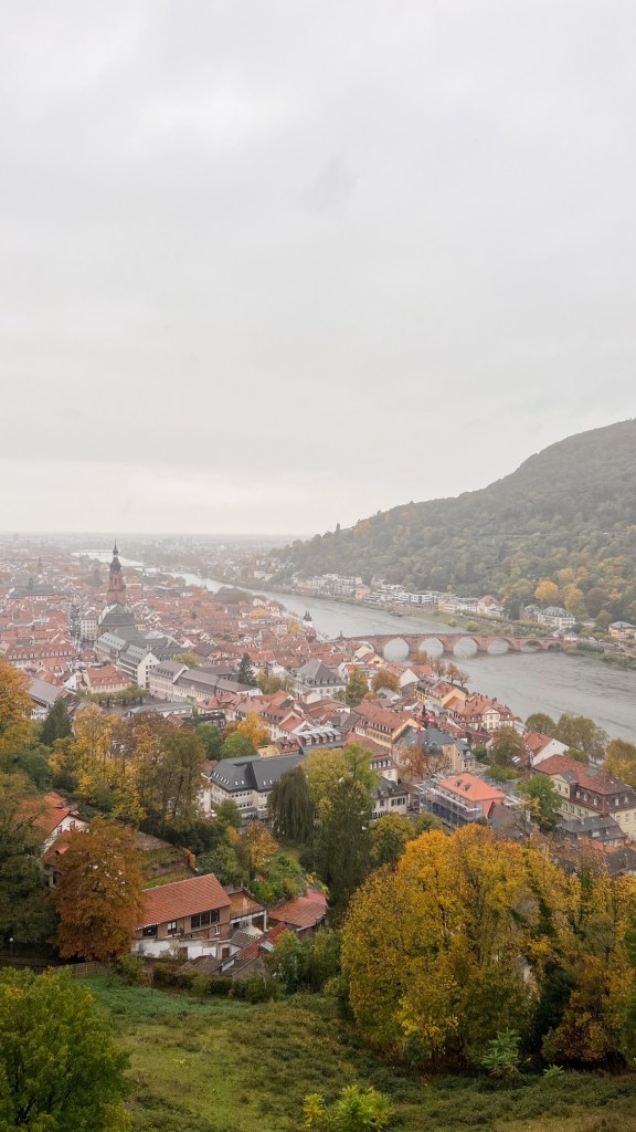 I recently took a trip to Germany and France. First stop on my trip was Heidelberg, a quaint city located along the Neckar River in the German state of Baden-Württemberg. One of its most famous attractions is Heidelberger Schloss (Heidelberg Castle) that sits on the lower slope of the Königstuhl (King’s Chair) hill in the Odenwald mountains. The weather was cold and rainy and perfect.