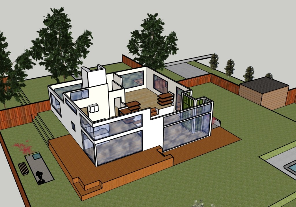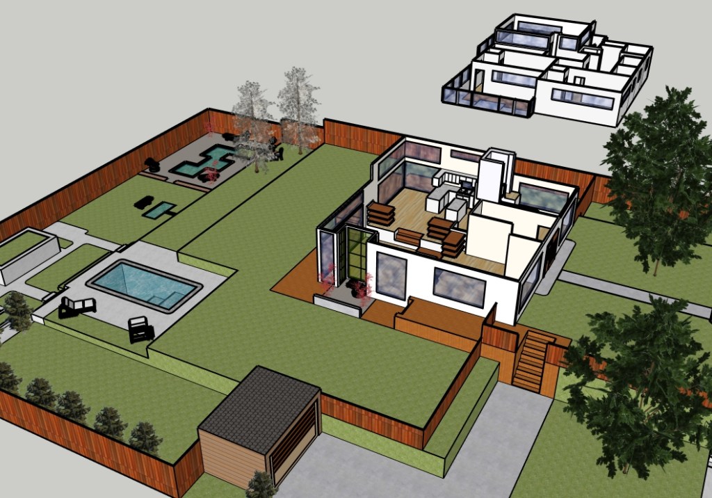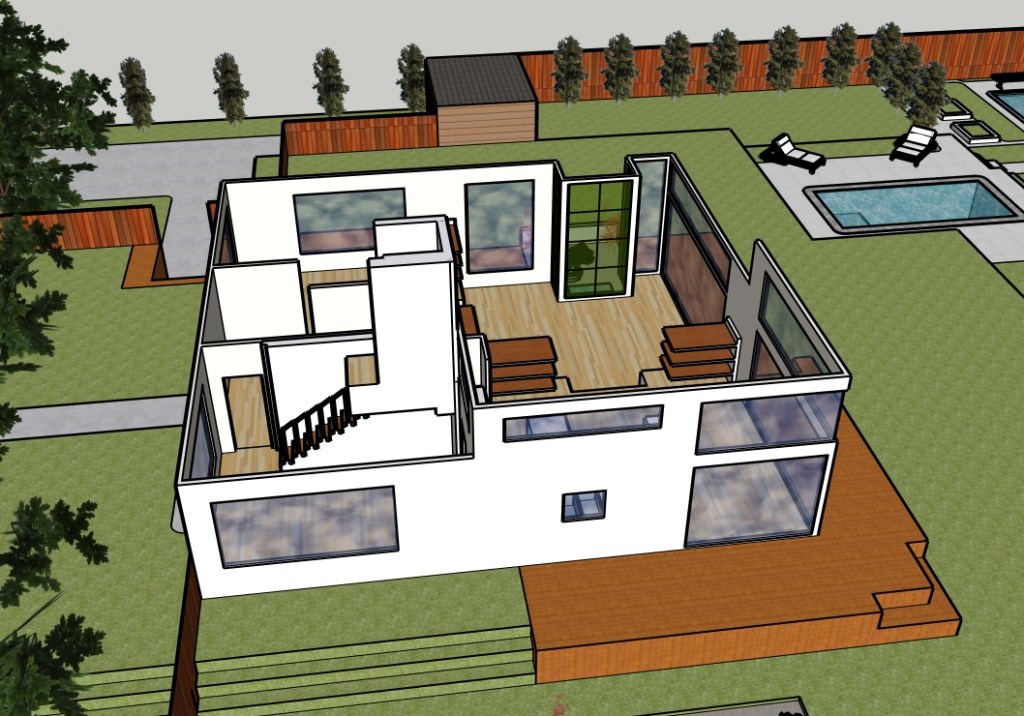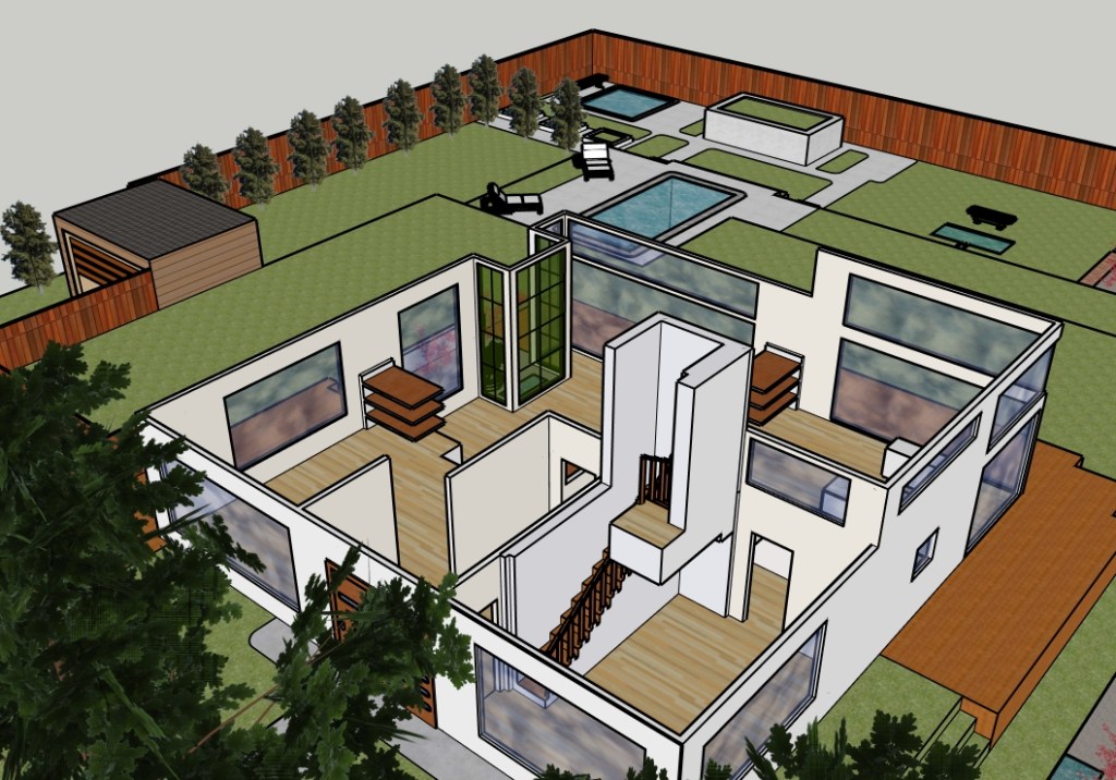 The point of the project was to take an idea and turn it into a conceptual model. In the first essay, I posed some rhetorical questions to myself. I thought about these questions throughout the design process. In the second essay, I started a floor plan. In the third essay, I designed the landscape and exterior features. In the fourth and final essay, I reviewed what I had created and then finalized the design.