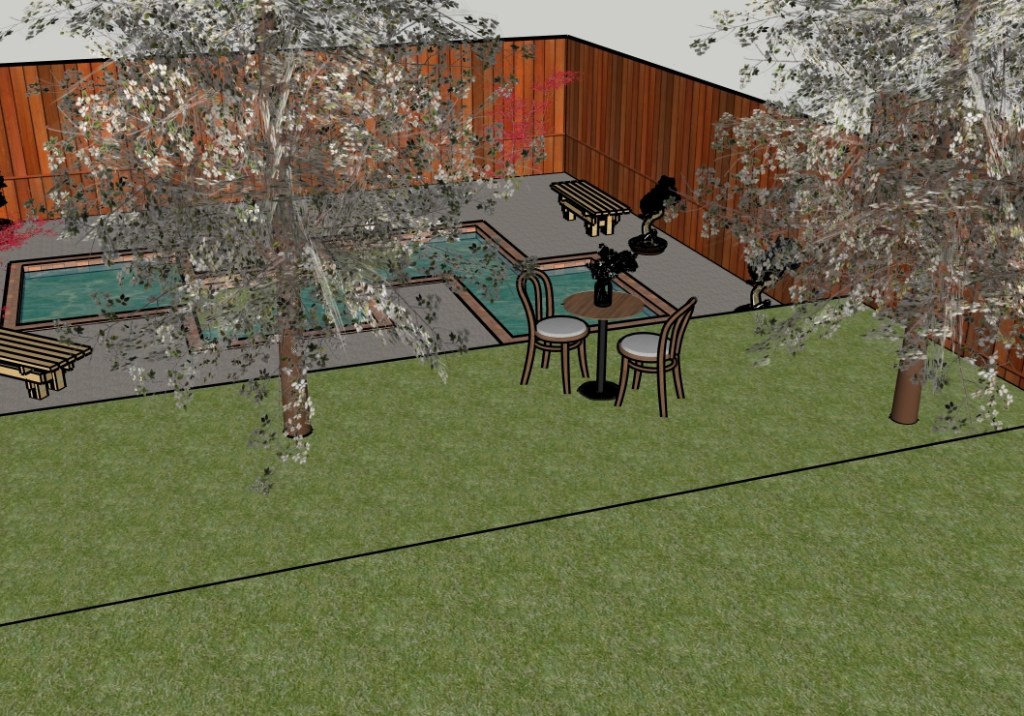 The personal enjoyment I get from studying architecture is enough for me. Content with where I am, I took on this project for myself. I purposely didn’t set a time frame for completion. I thought it would be fun to revisit a drafting program. But this time, not as a tool for drawing, but as a tool to help me experience the building. To put myself inside it. To see its form and how it interacts with its surroundings. I couldn’t feel its textures, but I have enough experience now to imagine how those textures feel on my fingertips. I imagined myself sitting in the chair under the linden tree, listening to the gentle sound of running water, and feeling the grass under my shoes. Taking in the whole scene.